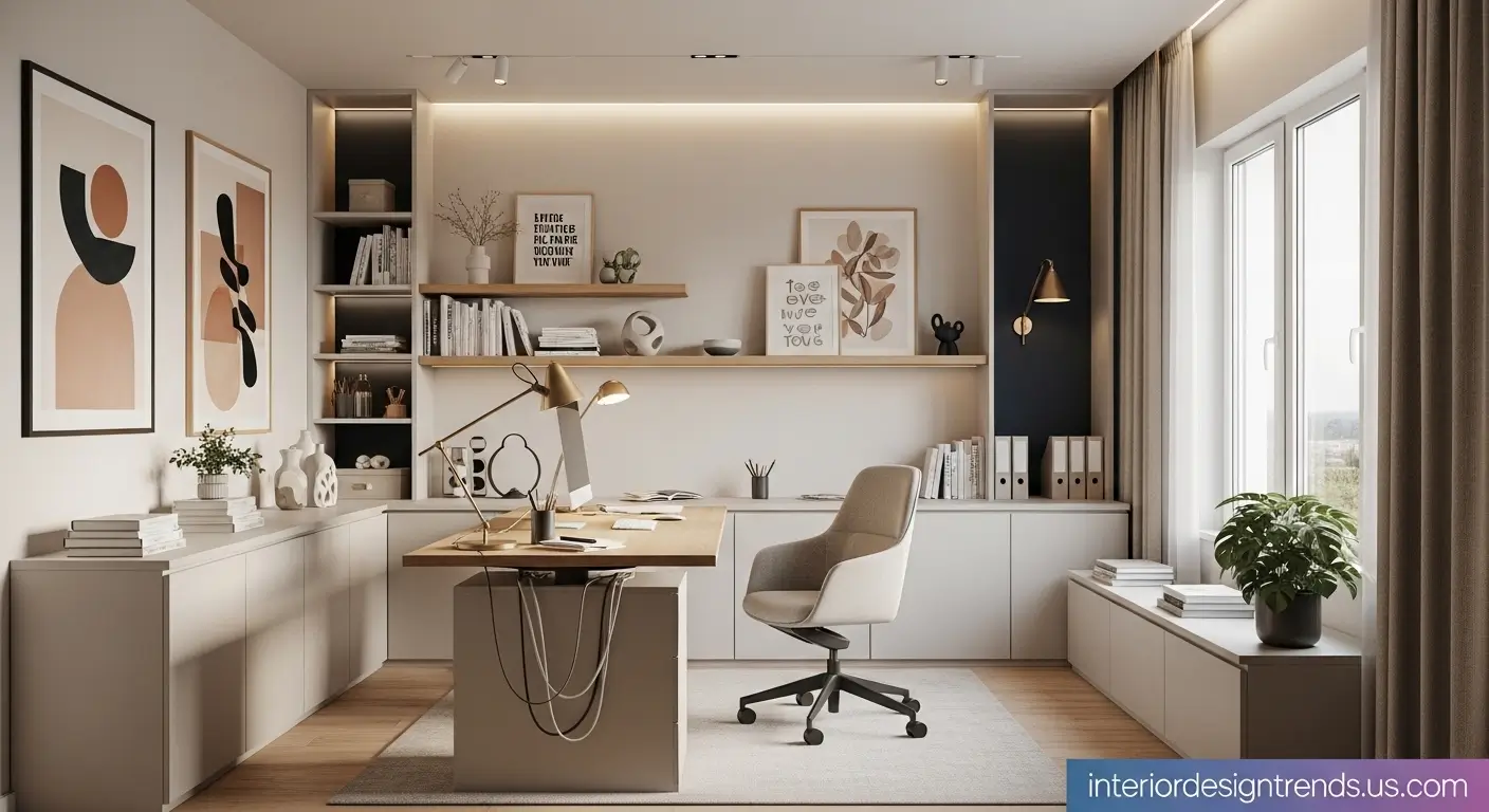 - Hybrid workspace: If you need both focus and creativity, combine functional layouts with areas for brainstorming or relaxation. Modular furniture and flexible decor can help you balance both goals.
